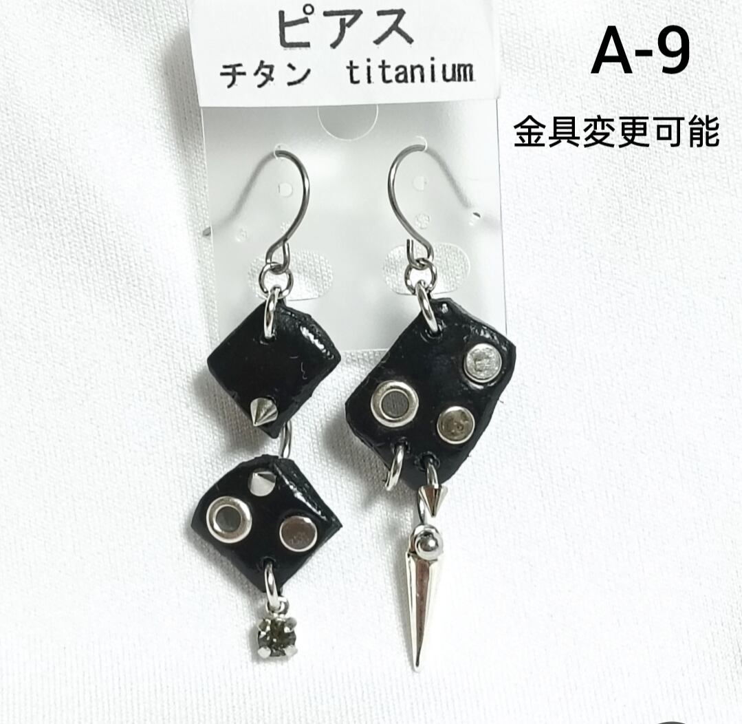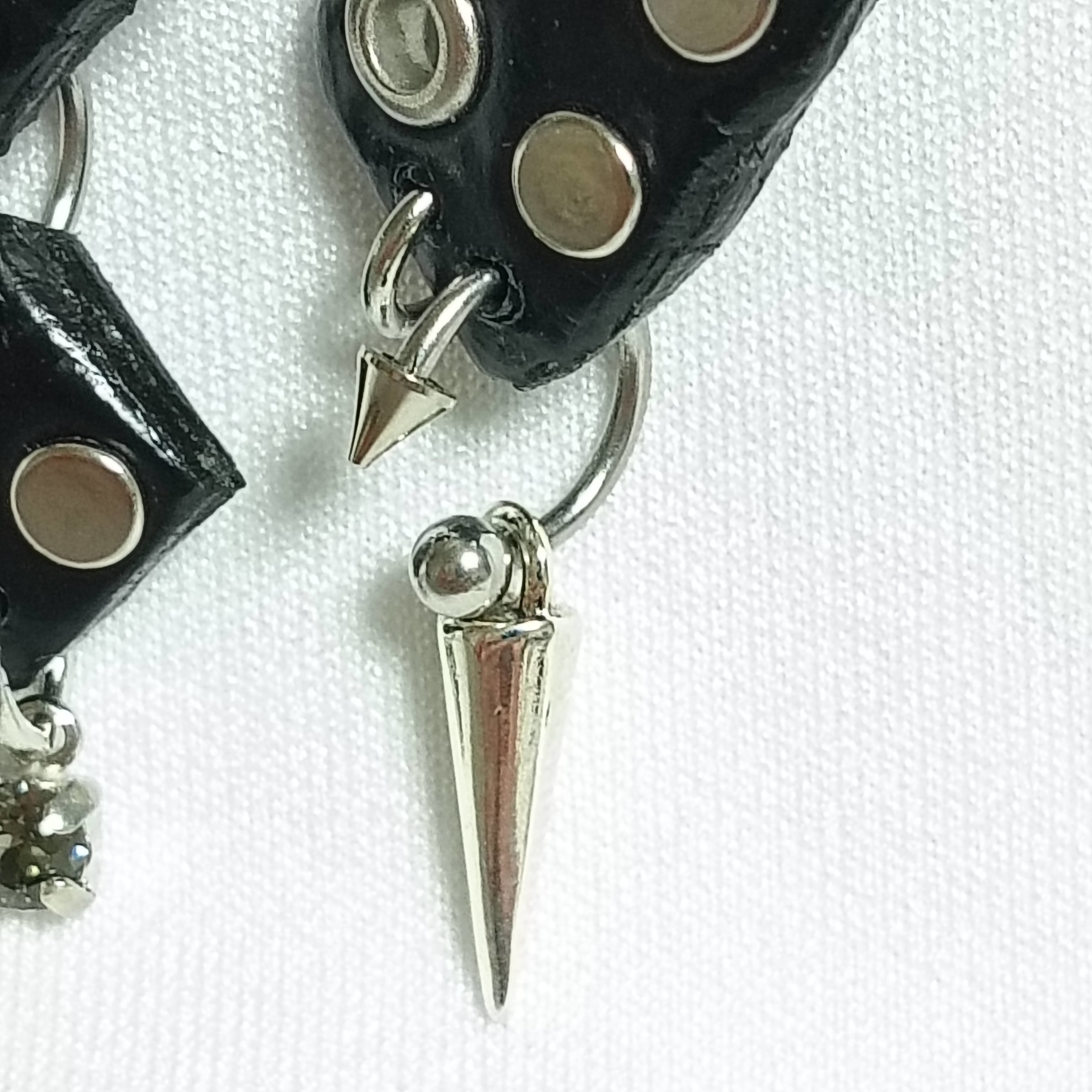 ステンレスのボディピアス、ハトメ金具、カシメ金具、マルカンなどをアクセントに、かっこよく仕上げました。