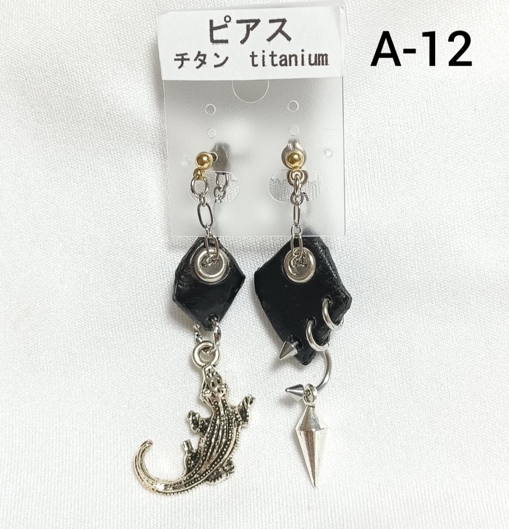 ステンレスのボディピアス、ハトメ金具、カシメ金具、マルカンなどをアクセントに、かっこよく仕上げました。
