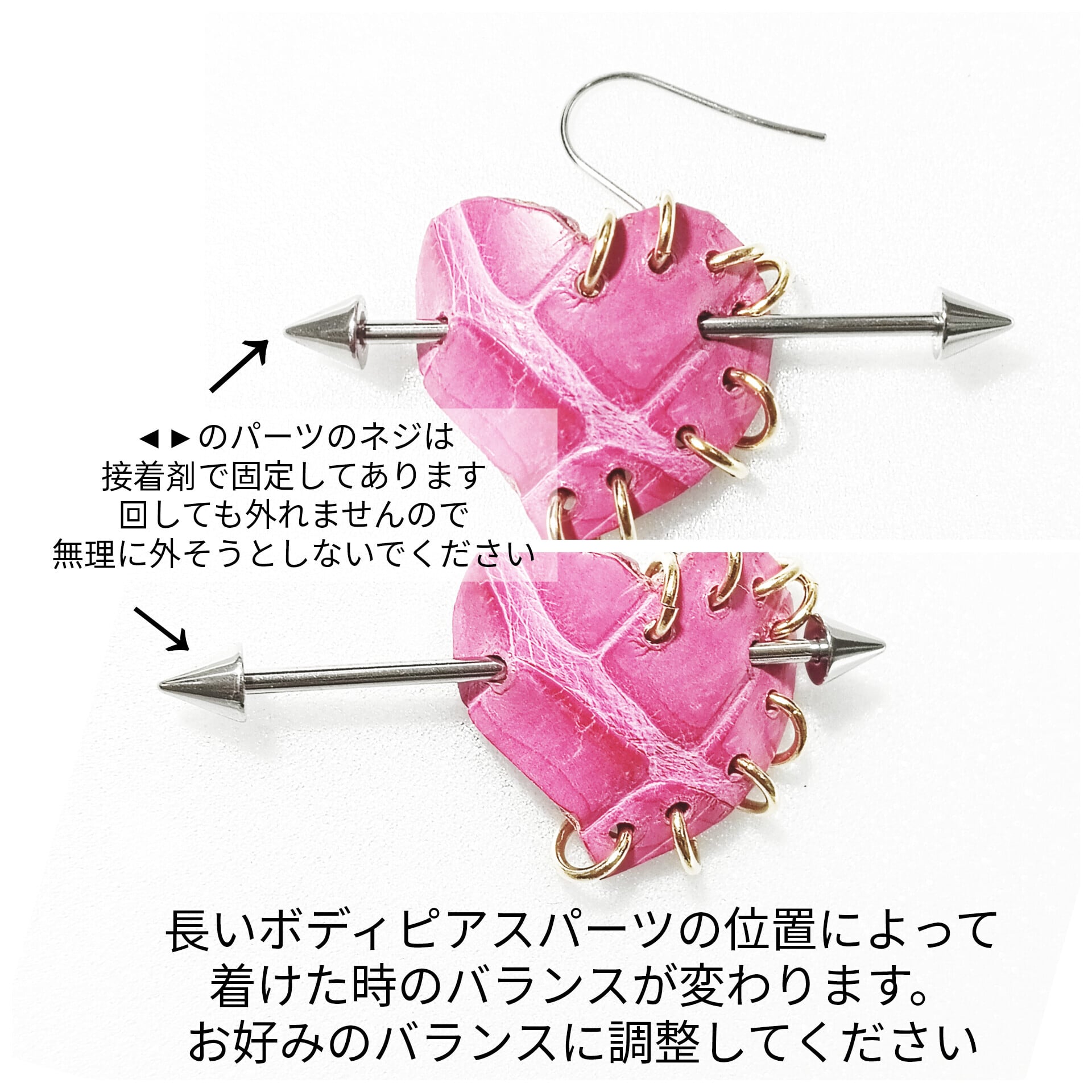 ボディピアスは、ネジで閉めるタイプのピアスですが、接着剤で固定してあるので取り外しはできません。
